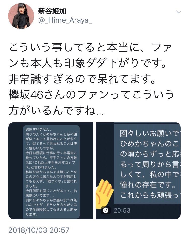 #新谷姫加 (@_Hime_Araya_ )さん、ツイ消しされたようですね